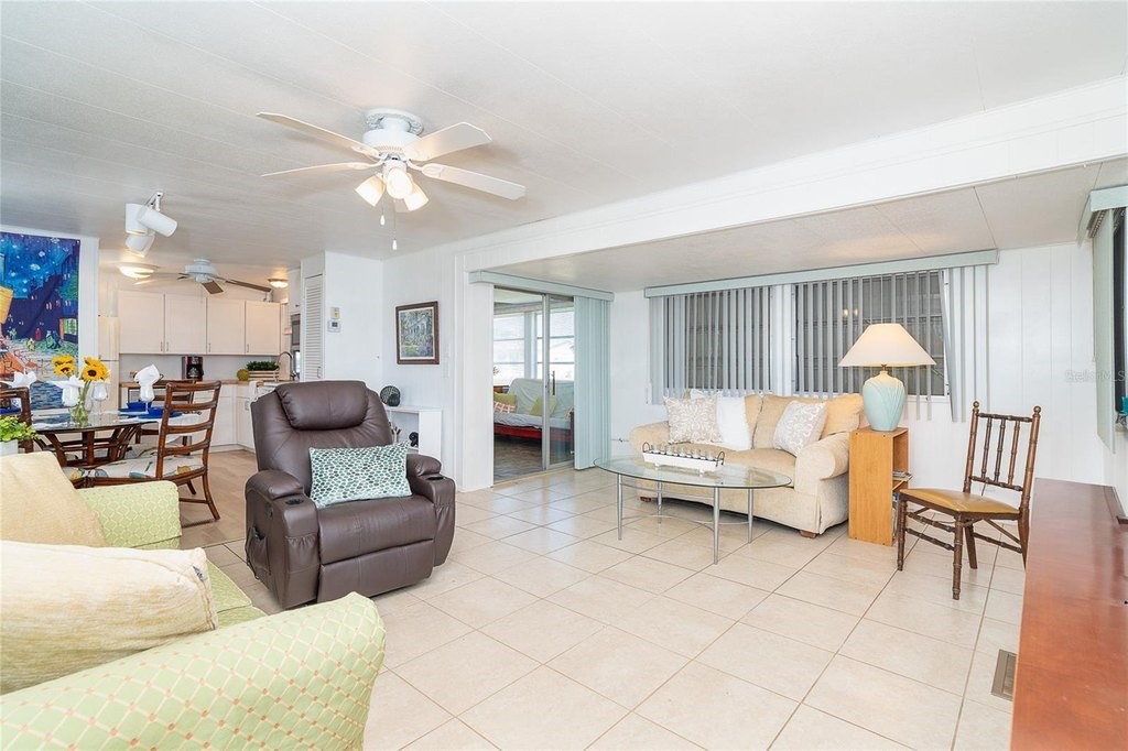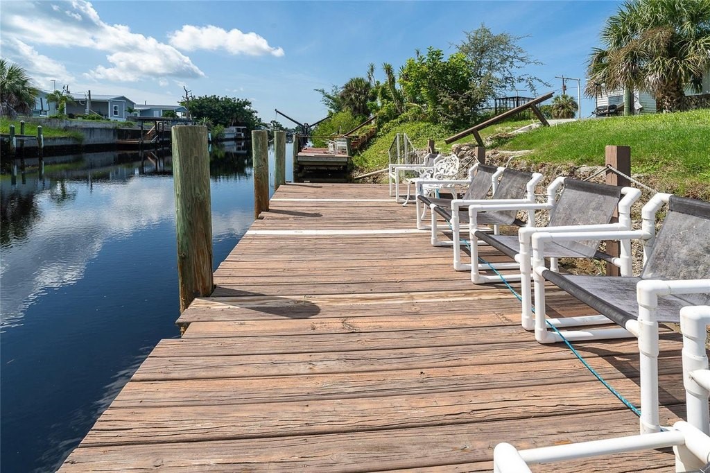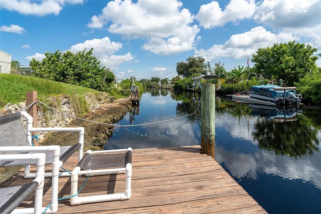 SELLER IS OPEN TO ALL REASONABLE OFFERS. Welcome to Manatee Cove (Holiday Mobile Estates) in beautiful Englewood, Florida! This active 55+ deed-restricted community is pet friendly, golf cart friendly, and best of all—you own the land with no lot fees! Membership to the clubhouse is optional, giving you flexibility to enjoy community activities as you wish. This charming 2-bedroom, 2-bath SALTWATER CANAL WATERFRONT WITH GULF ACCESS, ."home offers 880 sq. ft. of living space and is being sold fully furnished—ready for immediate occupancy. Also, nearby are a variety of GOLF COURSES to choose from. With its own private dock, this property is perfect for boating, kayaking, canoeing, or paddleboarding right from your backyard. The home features a single-wide layout with a bump-out and storage shed, plus a spacious lanai with windows and screens to enjoy year-round. Major updates include: new roof (2023), HVAC (2019), water heater (2022), newer plumbing, and updated electric. The stylish wide-plank vinyl flooring runs throughout, enhancing the open and airy feel. Inside, the bright and welcoming great room flows into a refreshed kitchen complete with newer cabinetry, sink, fixtures, disposal, two pantries, and 2022 dishwasher and microwave. The split bedroom design provides privacy, with the primary suite overlooking the dock and canal, featuring a generous closet and a beautifully remodeled bath. The guest bedroom also has an en suite bath with newer vanity and toilet. Step outside through the screened lanai door and onto your own private dock. For boaters, there’s also a community boat ramp nearby (association membership required), providing easy access to Redfish Cove and Lemon Bay. This waterfront lifestyle comes at a fantastic value—bring your fishing poles and start enjoying sun, fun, and Florida living! All just minutes from shopping, dining, and the beach. Four additional storage closets in the home. Staging items are excluded